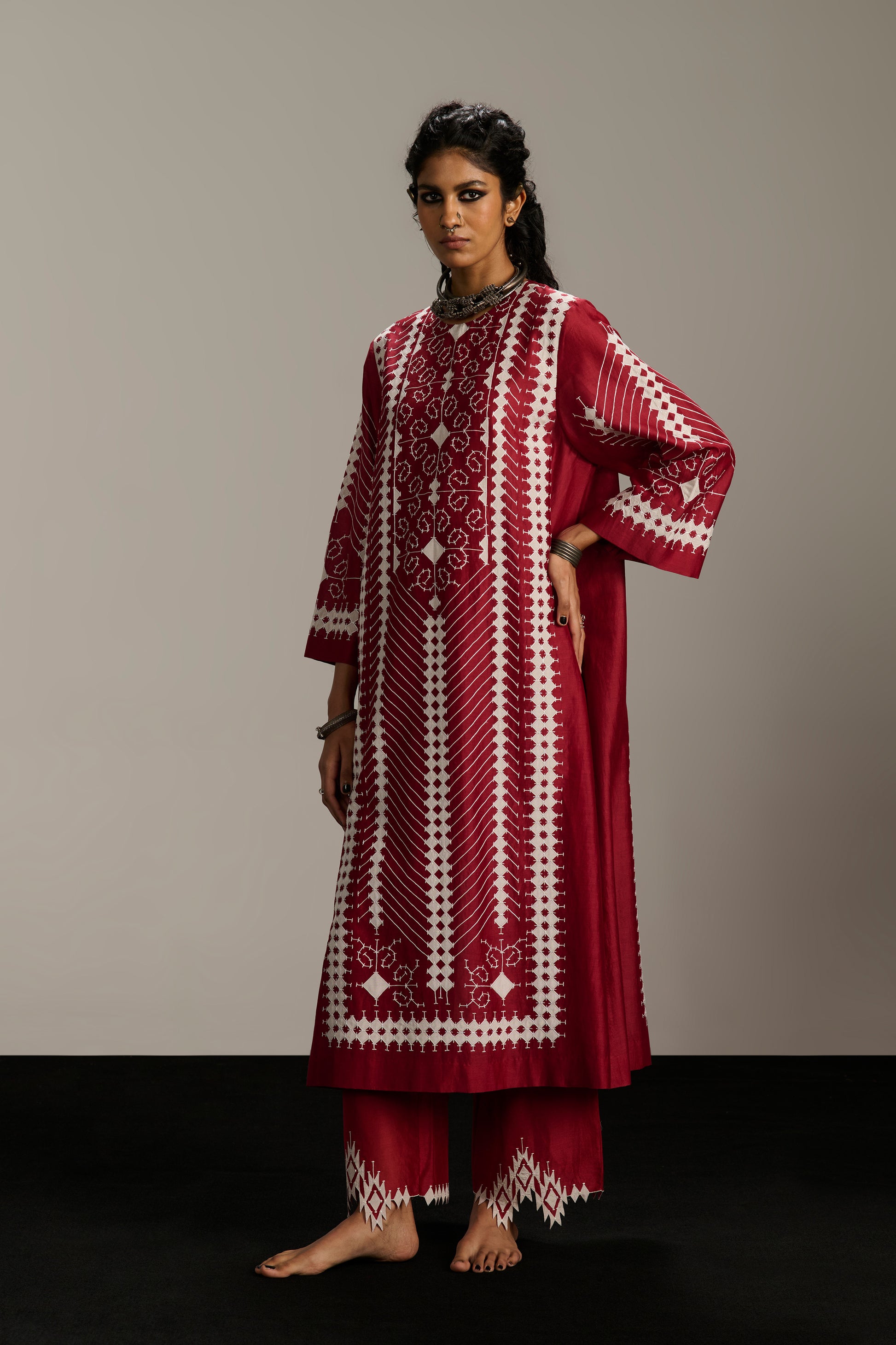 When ordering a full set, Pants are elasticated and fabric used is Cotton Silk Chanderi.